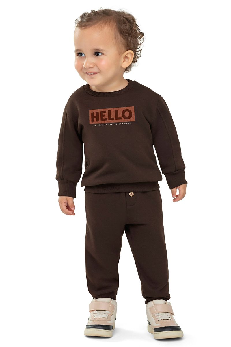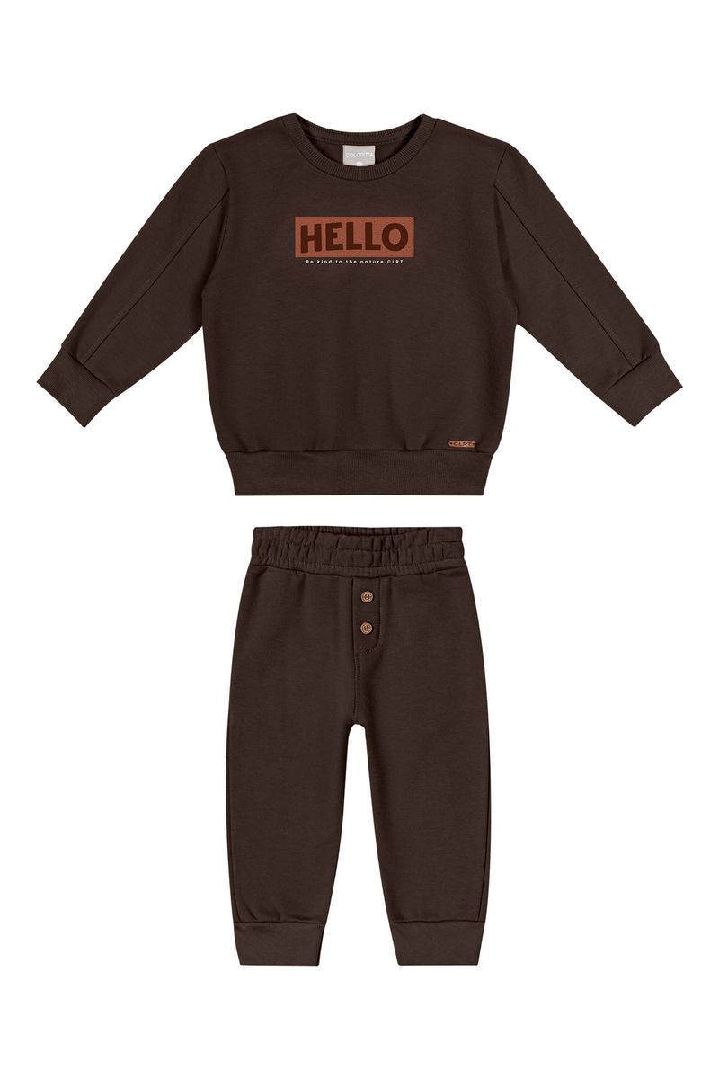• Conjunto composto por blusão e calça • Feito em moletom felpado • Possui mangas longas • Estampa em puff • Elástico no cós • Ideal para passeios e momentos especiais
