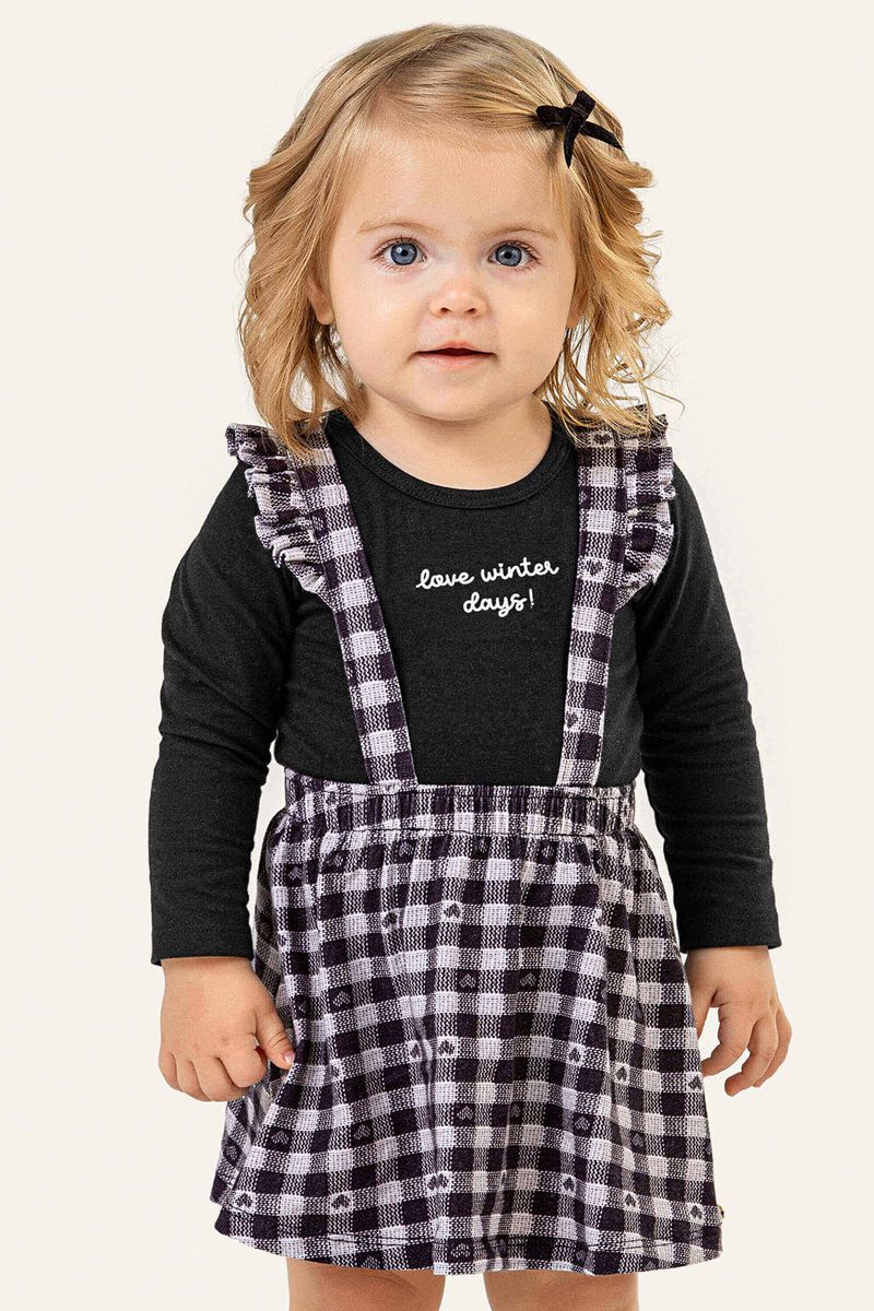 Conjunto Bebê Menina Body e Salopete Xadrez Colorittá Preto REF: 71147-7001