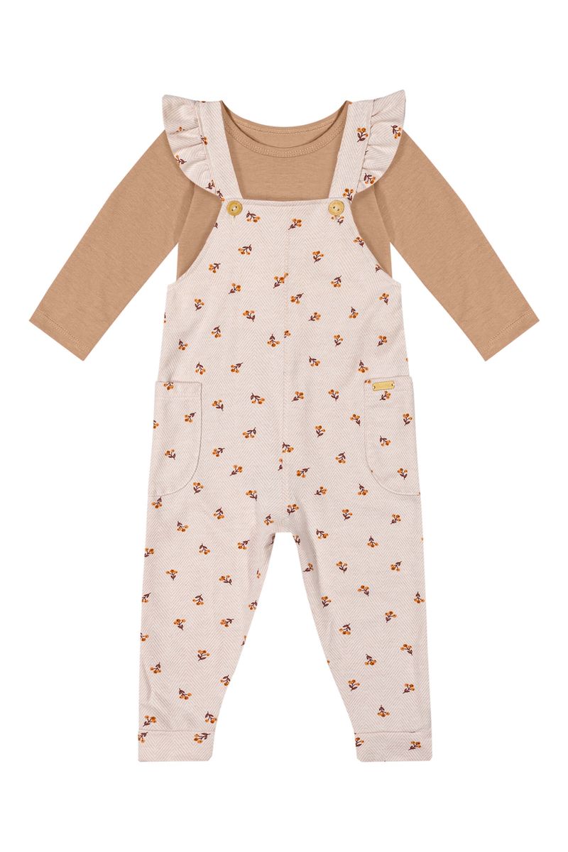 Conjunto Bebê Menina Body e Jardineira Floral Colorittá Marrom REF: 71153-8038