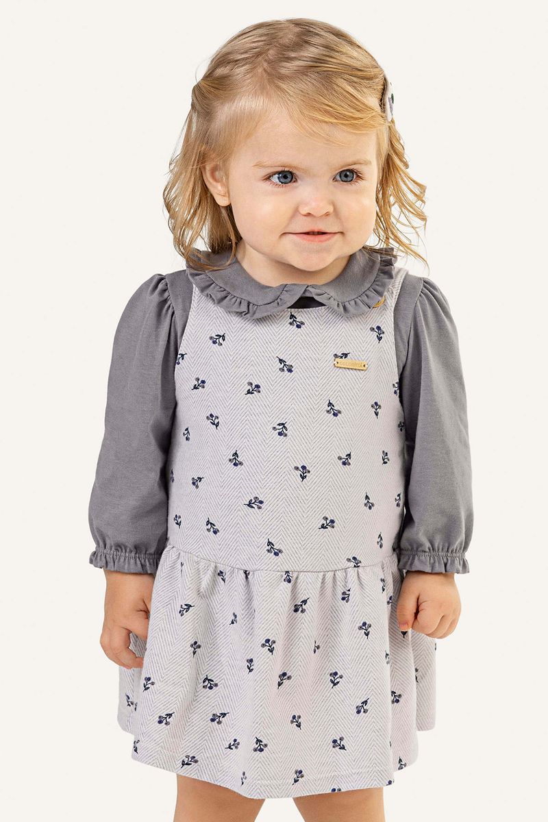 BabyMeninas BabyConjuntos Baby MeninasConjunto Bebê Menina Vestido Floral e Blusa Colorittá Cinza