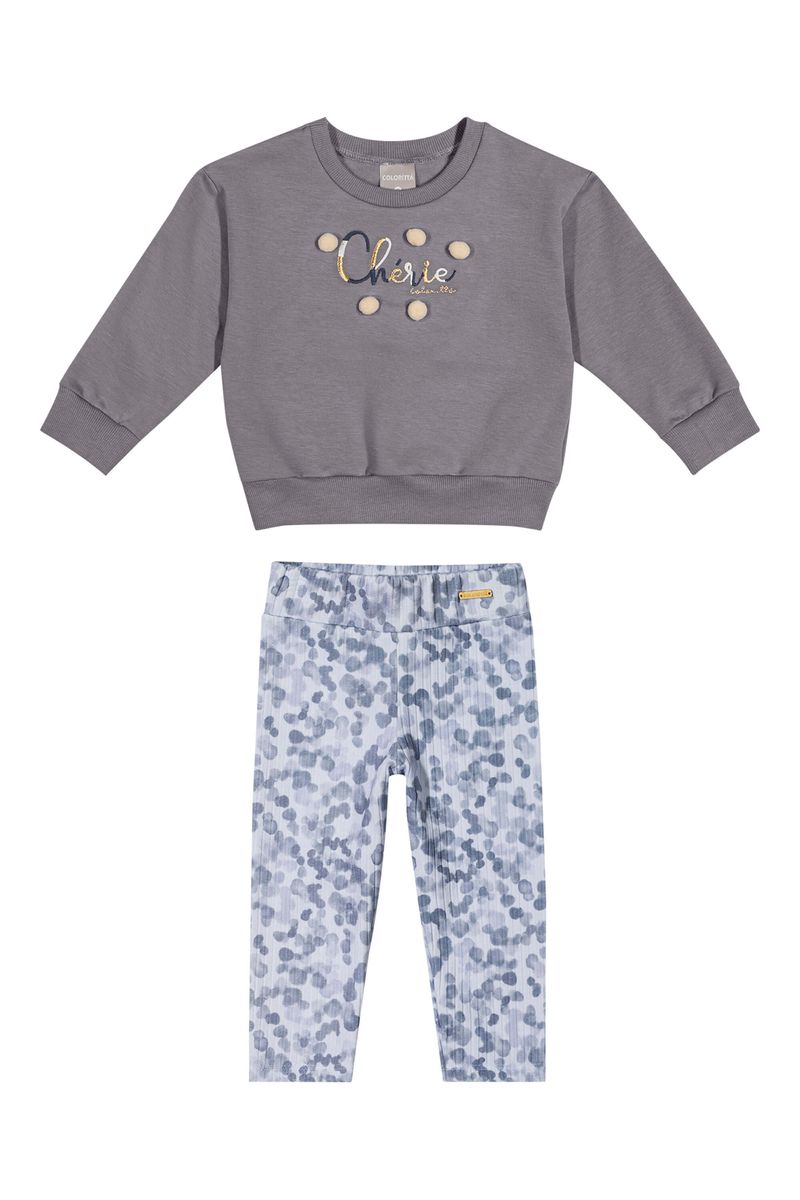 Conjunto Bebê Menina Blusão Pompom Colorittá Cinza REF: 71156-7031