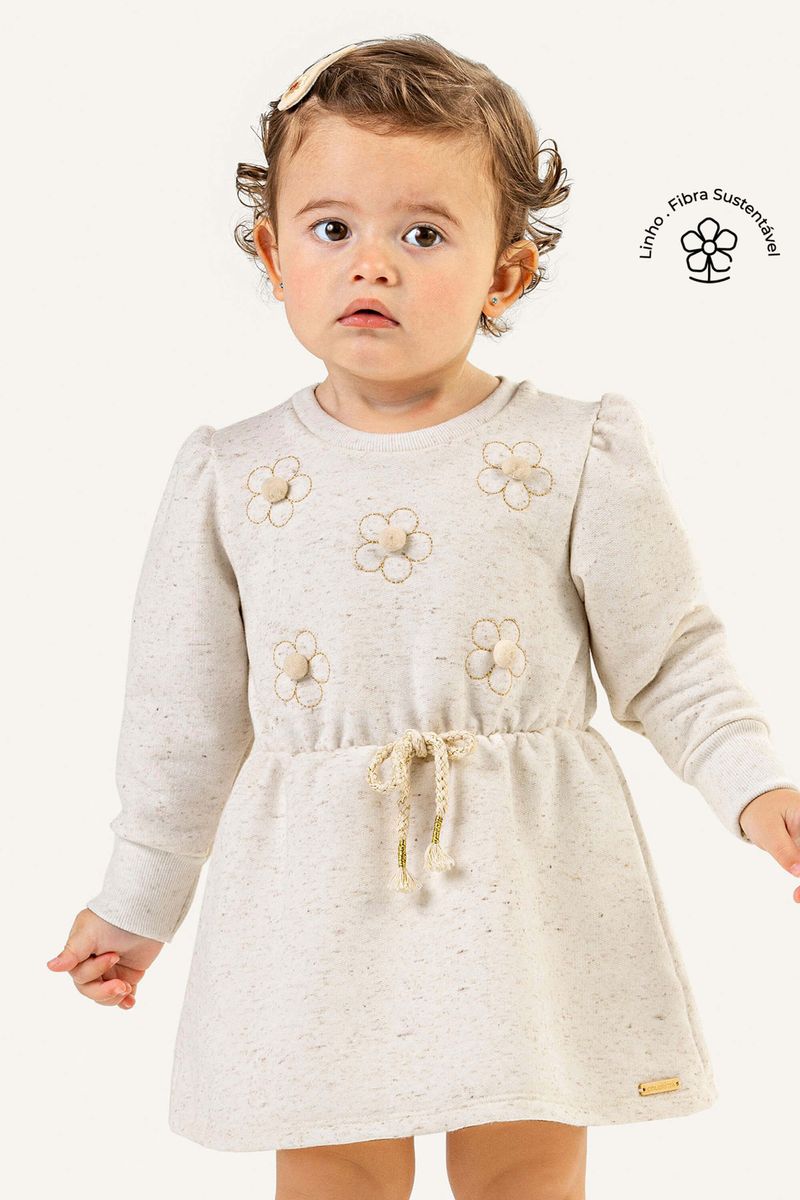 BabyMeninas BabyVestidos Baby MeninasVestido Bebê Menina Flores Moletom Linho Colorittá Bege