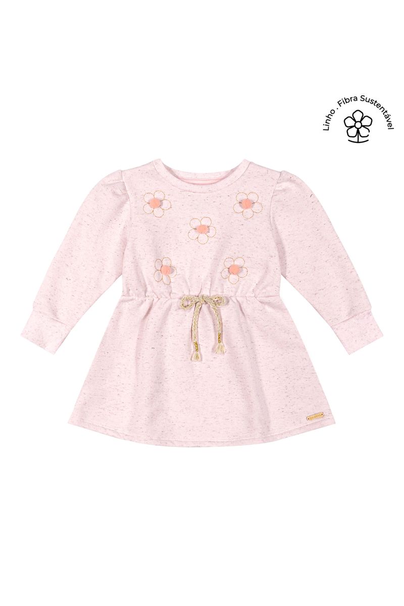 Vestido Bebê Menina Flores Moletom Linho Colorittá Rosa REF: 71162-4954