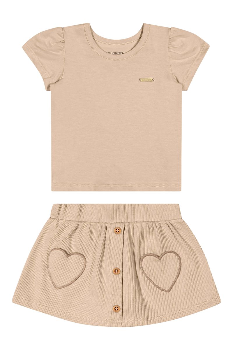 Conjunto Bebê Menina Curto Coração Colorittá Bege REF: 71180-2039