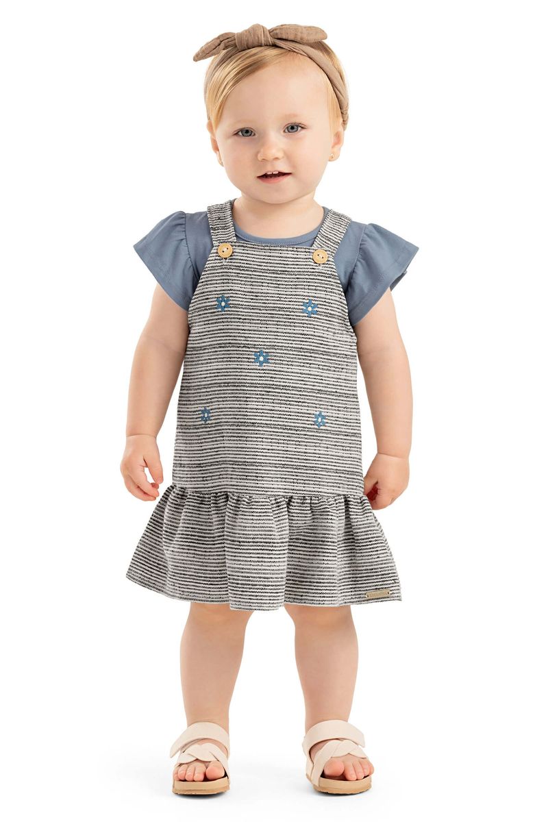 BabyMeninas BabyConjuntos Baby MeninasConjunto Bebê Menina Listrado Eco Floral Colorittá Azul