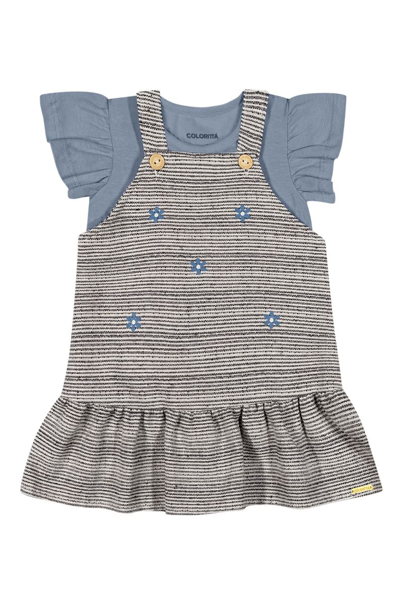 Conjunto Bebê Menina Listrado Eco Floral Colorittá Azul REF: 71184-6131