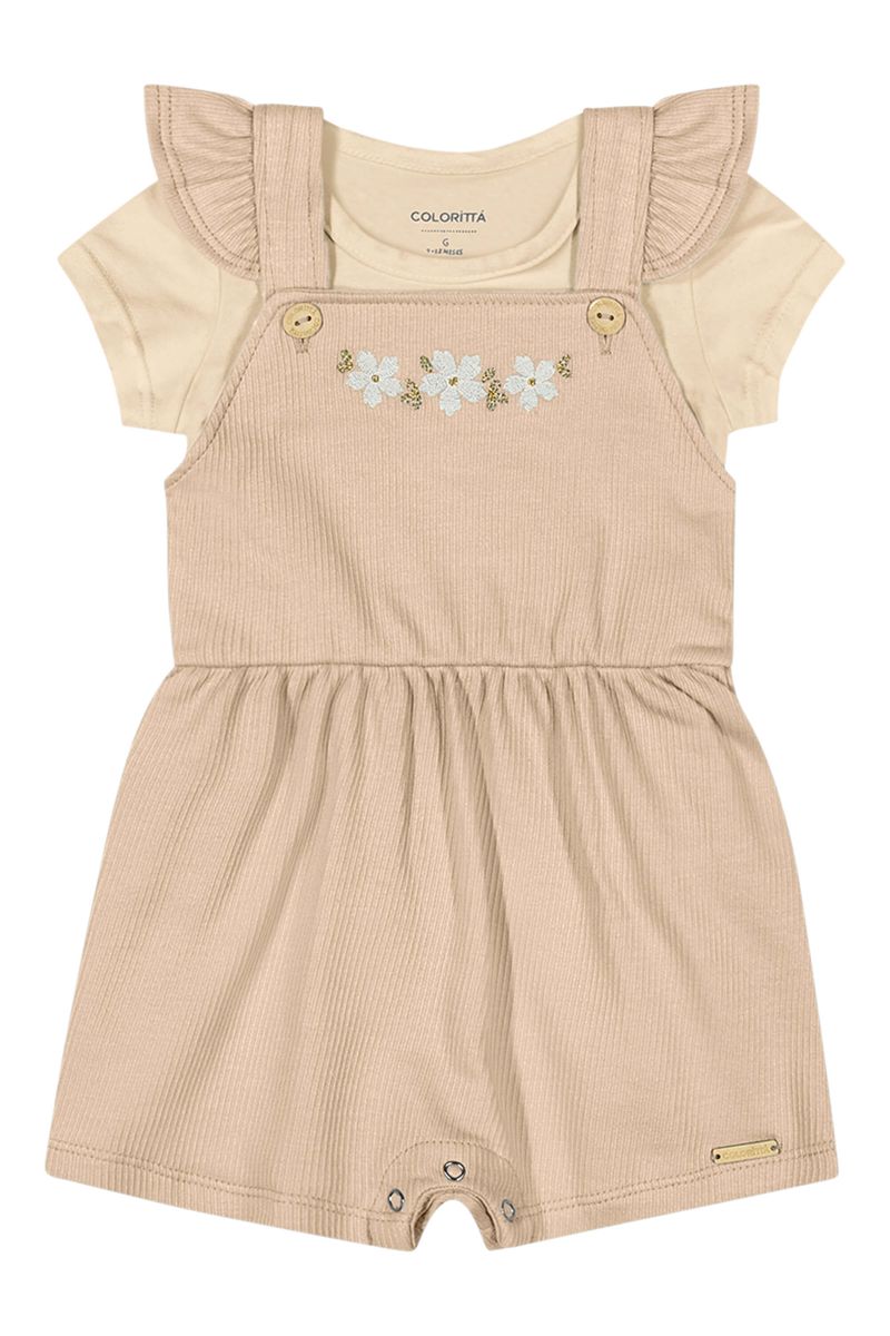 BabyMeninas BabyConjuntos Baby MeninasConjunto Bebê Menina Jardineira Floral Colorittá Bege