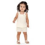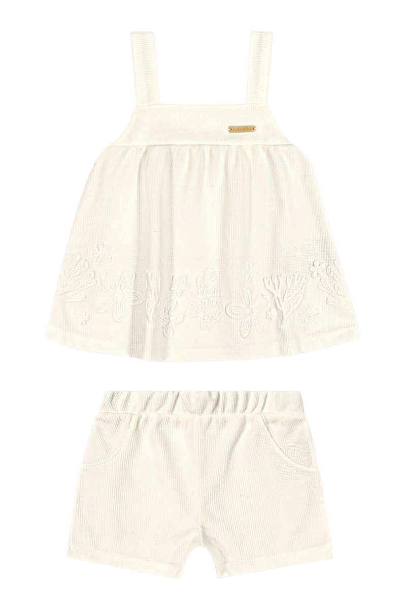 • Conjunto composto por regata e short • Feito em malha tricô mesclada • Modelagem soltinha • Estampa de corais com efeito puff • Elástico no cós • Ideal para passeios em família