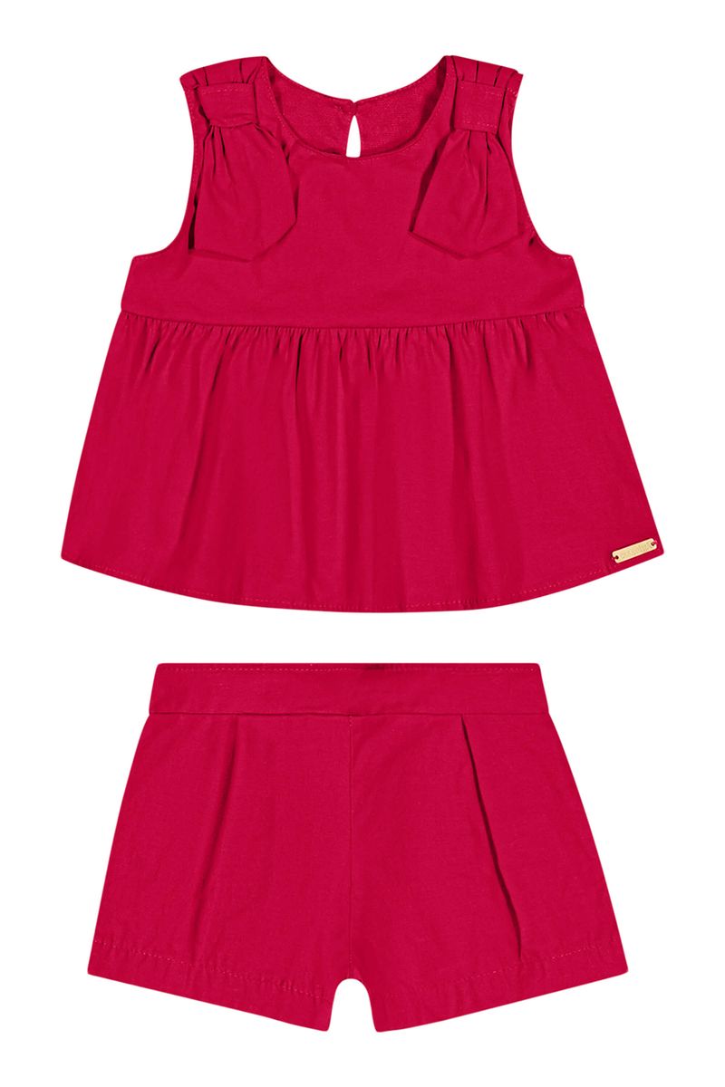 • Conjunto composto por regata e short • Feito em tecido tricoline • Detalhe de laços nos ombros • Fechamento em botão nas costas • Elástico no cós • Ideal para ocasiões especiais e celebrações