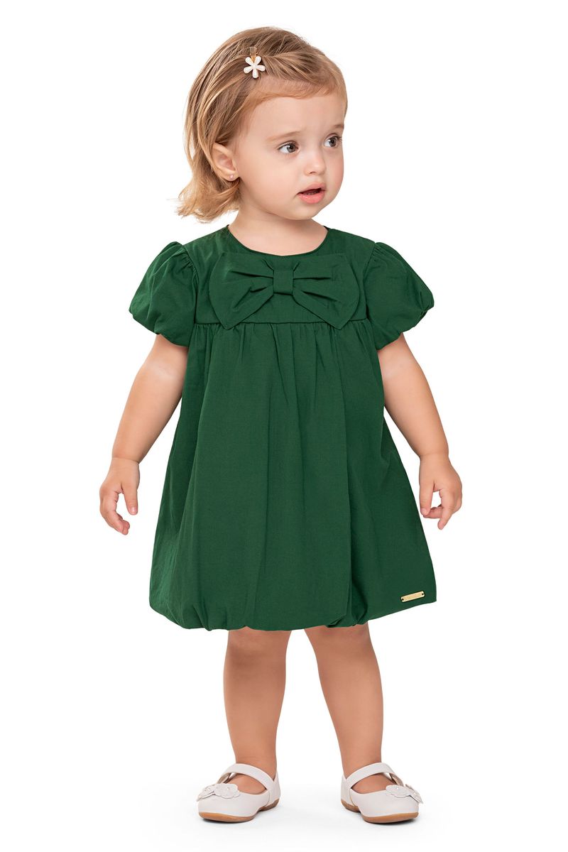 • Feito em tricoline com elastano • Modelagem balonê • Detalhe frontal com laço • Fechamento em botão nas costas • Possui forro • Ideal para festas ou momentos especiais