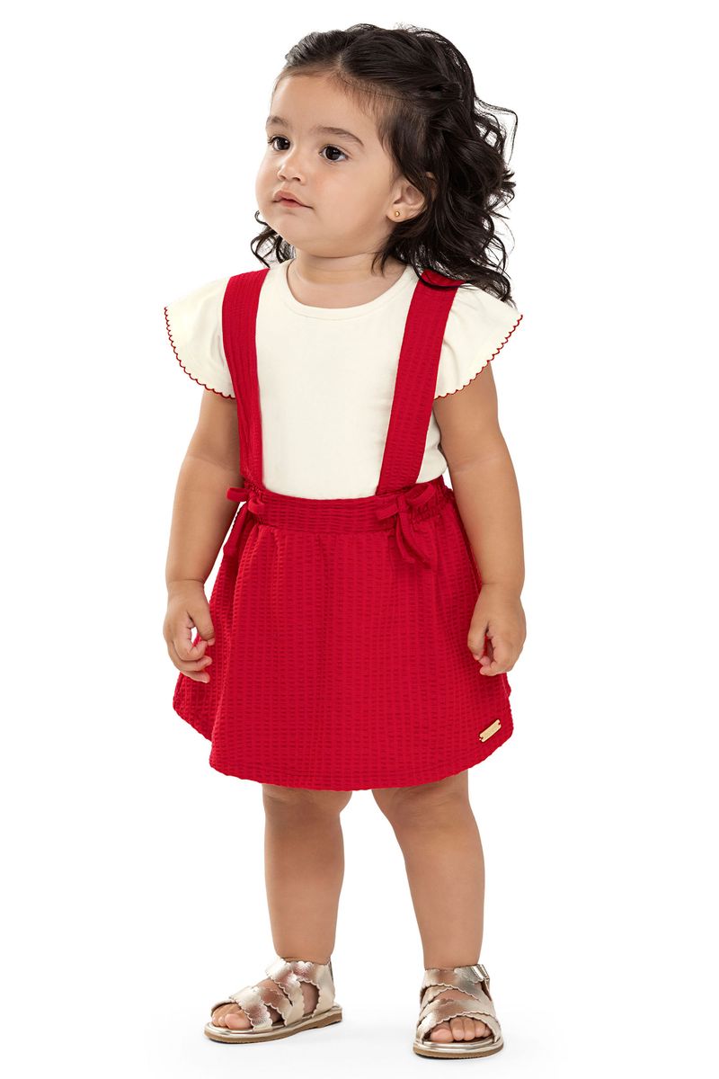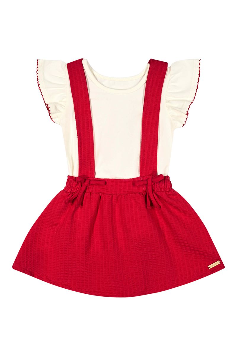 • Conjunto composto por body e salopete • Feito em cotton leve e malha anarruga • Mangas curtas franzidas com acabamento • Fechamento em botões de pressão • Salopete com elástico no cós e detalhes em laços • Ideal para passeios em família e ocasiões especiais