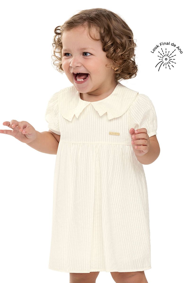 Vestido Bebê Menina Gola Boneca Bordado Colorittá Bege REF: 71210-2037