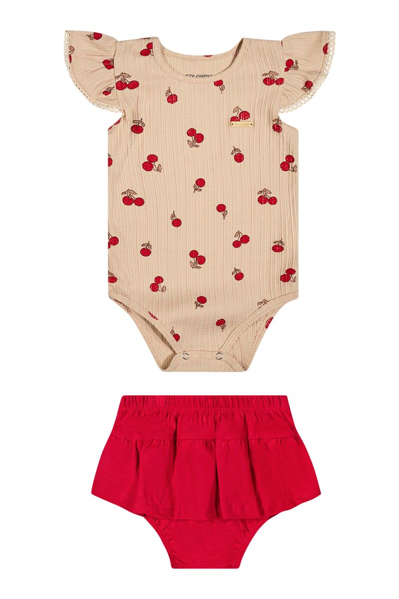 • Conjunto composto por body e calcinha • Feito em malha canelada trabalhada e cotton leve • Mangas curtas franzidas com renda • Fechamento em botões de pressão • Estampa de cereja • Elástico no cós e na boca das pernas • Ideal para os primeiros passeios