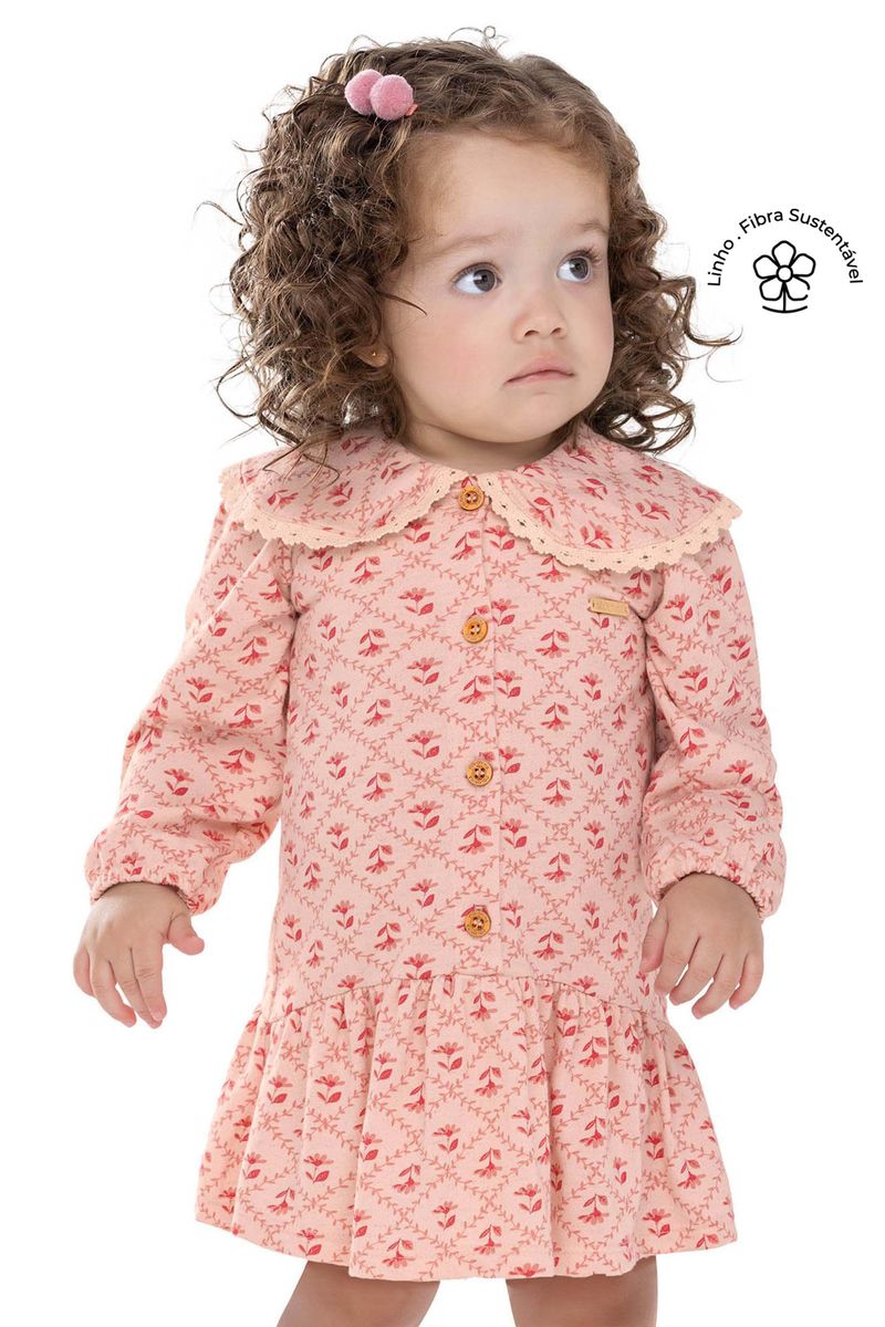 • Feito em malha linho sarjada • Modelagem soltinha com babados • Possui gola boneca com acabamento em renda • Possui manga longa • Estampa floral • Abertura em botões • Ideal para passeios e momentos especiais