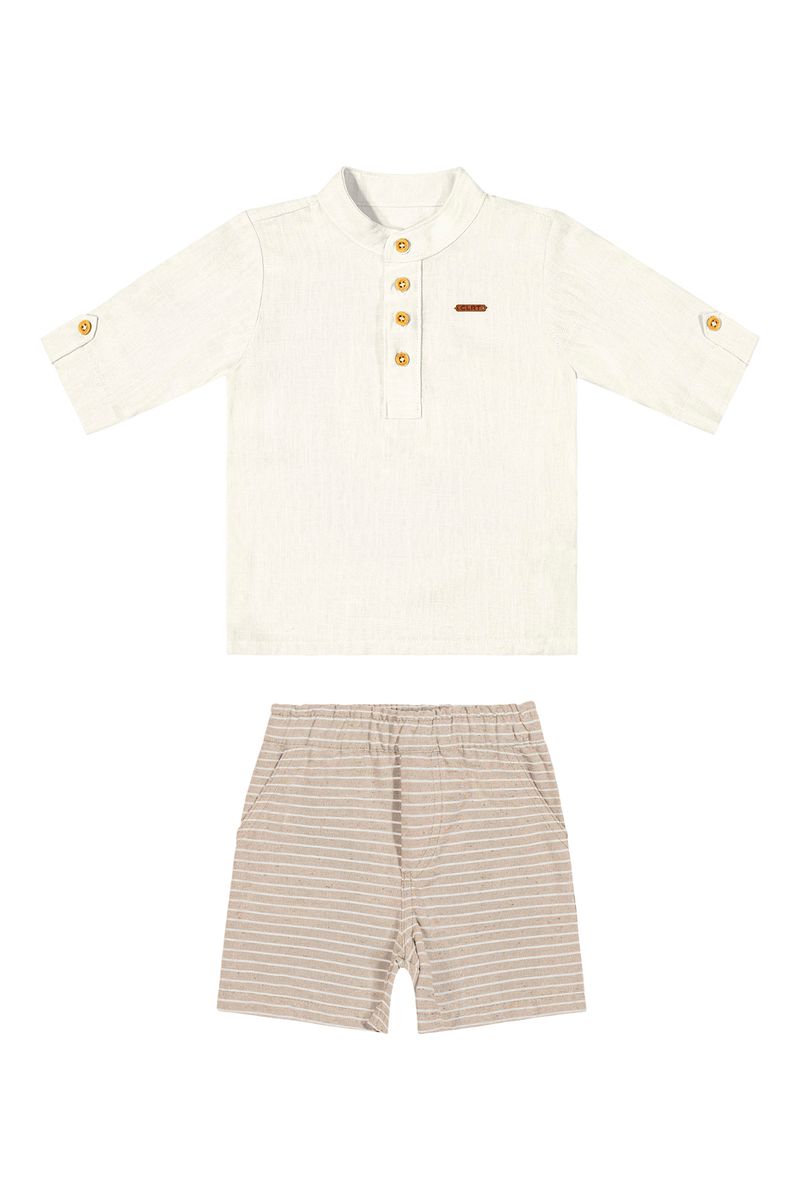 InfantilMeninosConjuntos MeninosConjunto Infantil Menino Eco Listrado Colorittá Bege