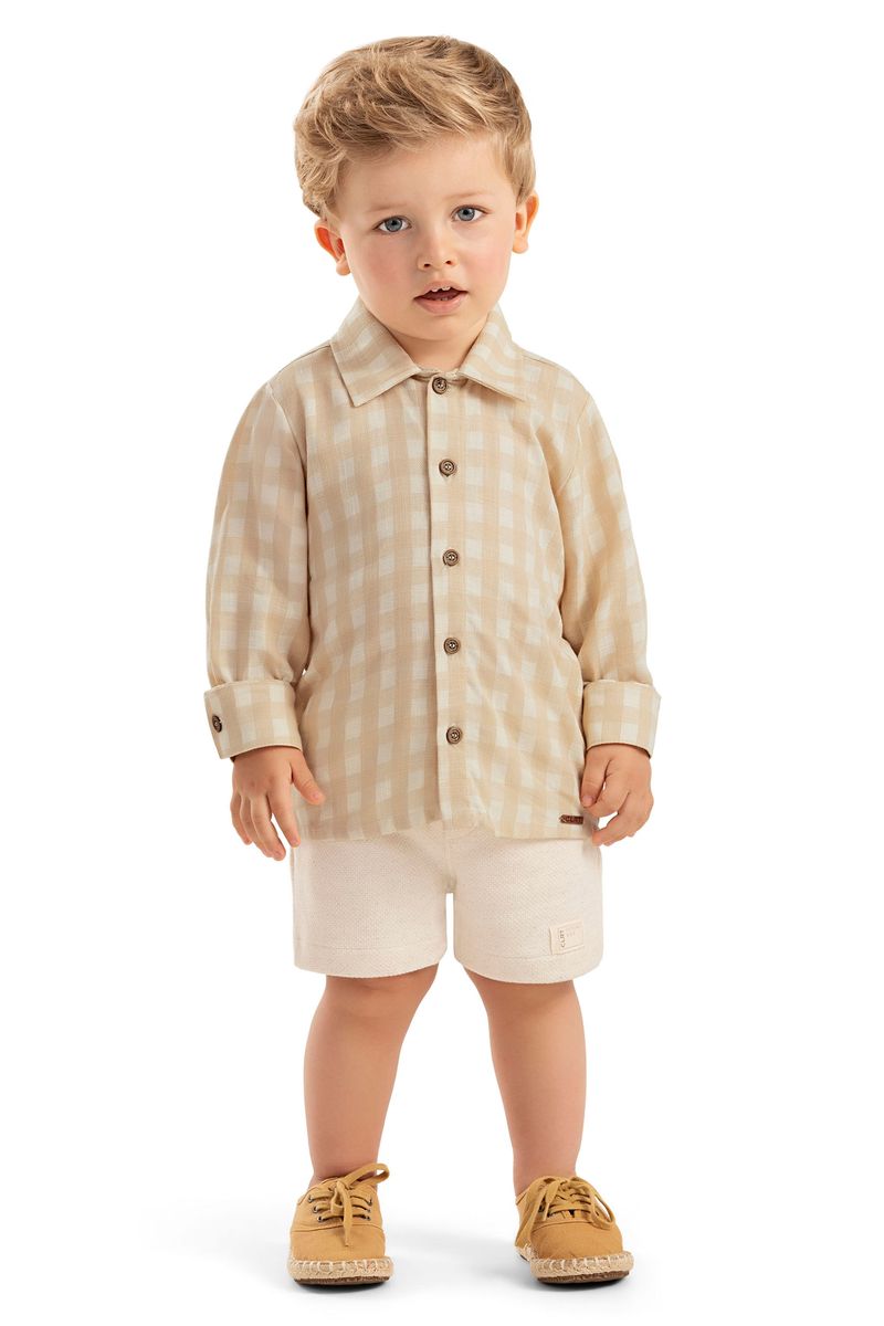 InfantilMeninosCamisa Infantil Menino Viscolinho Xadrez Colorittá Bege