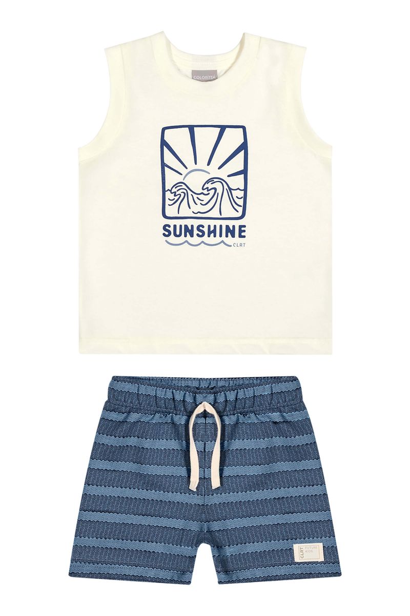 • Conjunto composto por regata e bermuda • Feito em meia malha e moletinho estampado • Estampa com temática tropical • Possui detalhes em relevo • Elástico no cós • Ideal para passeios em dias de sol