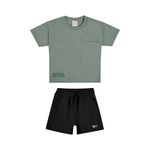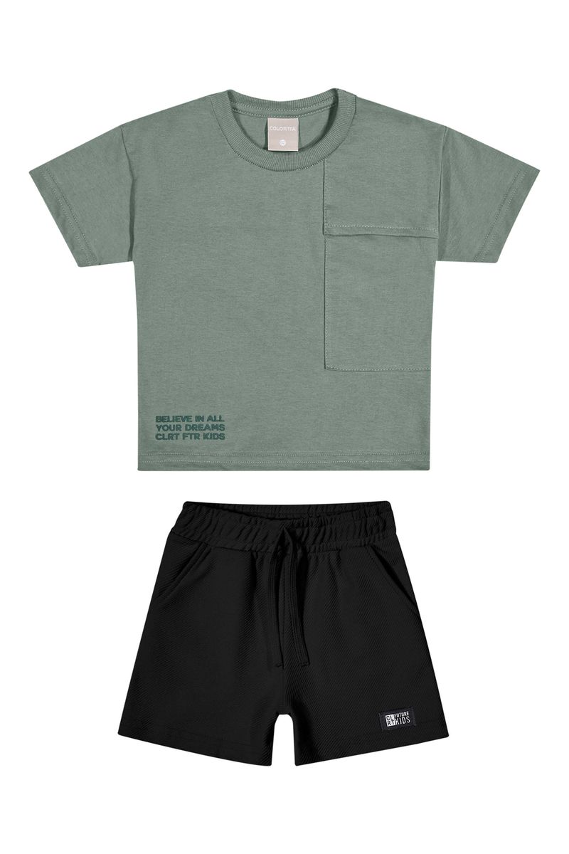 • Conjunto composto por camiseta e bermuda • Feito em meia malha e moletom sarjado • Possui mangas curtas • Estampa com elevo • Elástico no cós • Possui bolsos • Ideal para momentos de lazer