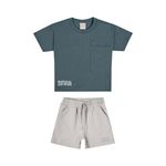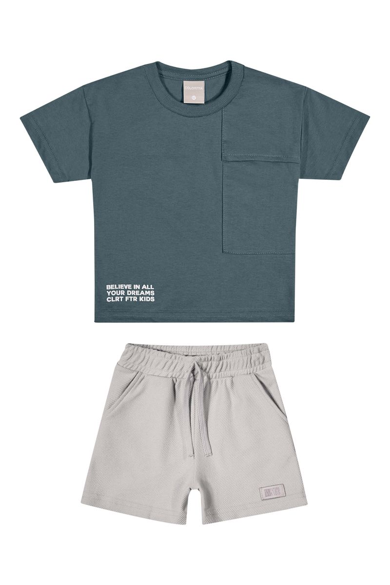 • Conjunto composto por camiseta e bermuda • Feito em meia malha e moletom sarjado • Possui mangas curtas • Estampa com elevo • Elástico no cós • Possui bolsos • Ideal para momentos de lazer