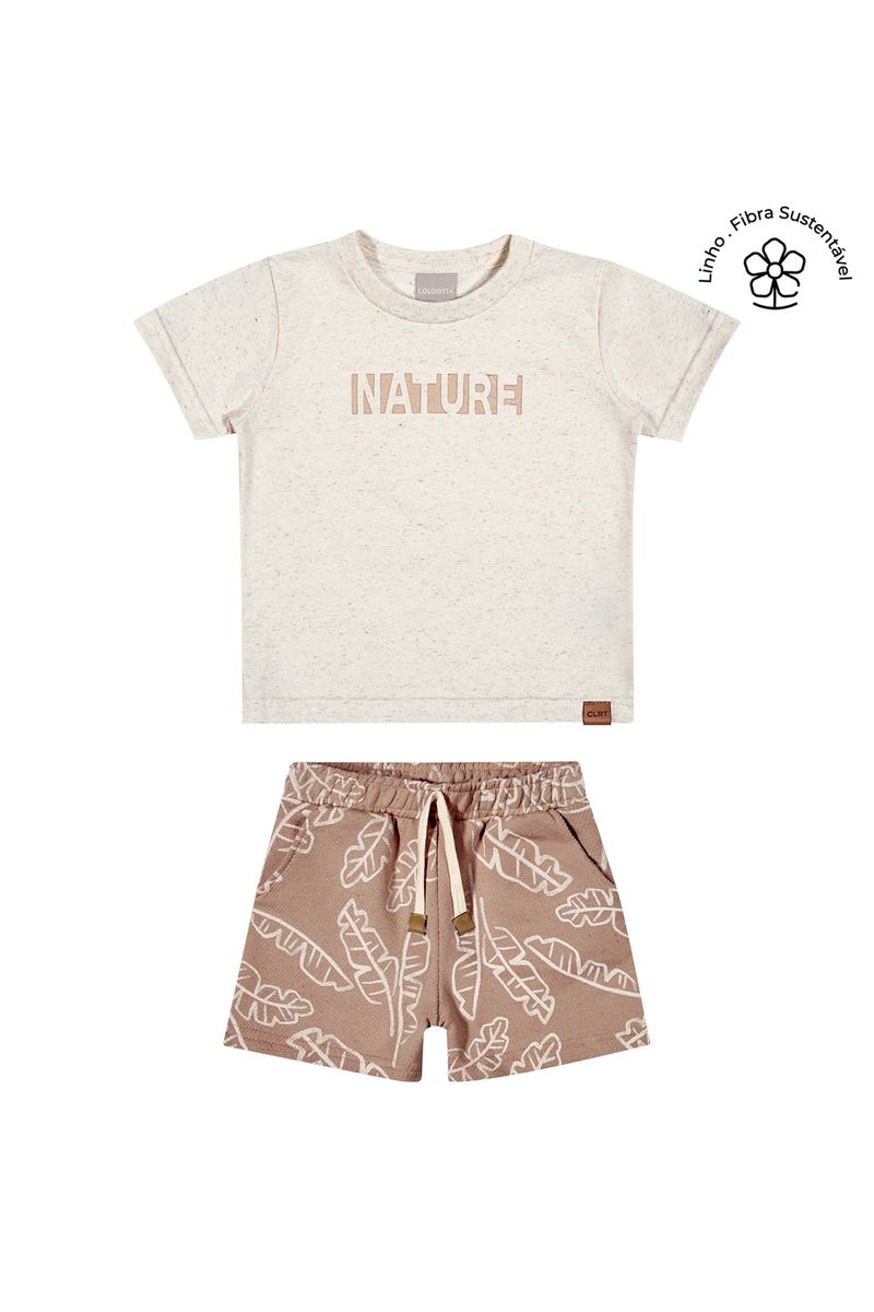 • Conjunto composto por camiseta e bermuda • Feito em malha linho e moletom eco linho estampado • Possui mangas curtas • Estampa tropical com folhas • Detalhes aveludados • Elástico no cós • Possui bolsos • Ideal para passeios e momentos de lazer