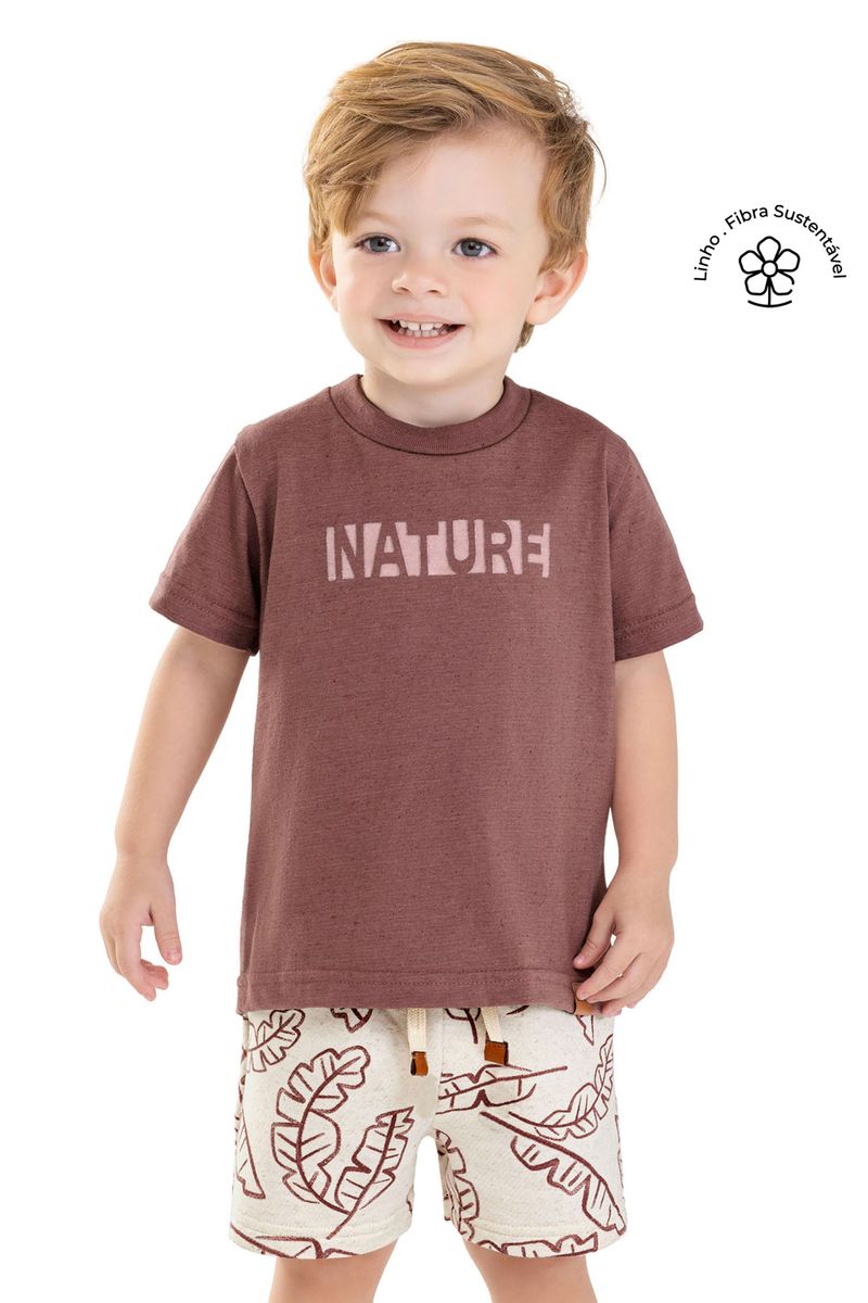 • Conjunto composto por camiseta e bermuda • Feito em malha linho e moletom eco linho estampado • Possui mangas curtas • Estampa tropical com folhas • Detalhes aveludados • Elástico no cós • Possui bolsos • Ideal para passeios e momentos de lazer
