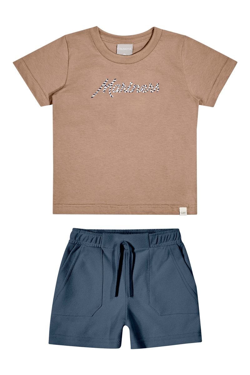• Conjunto composto por camiseta e bermuda • Feito em meia malha e moletom sarjado • Possui mangas curtas • Possui bordado bicolor • Elástico no cós • Possui bolsos • Ideal para passeios e momentos de lazer