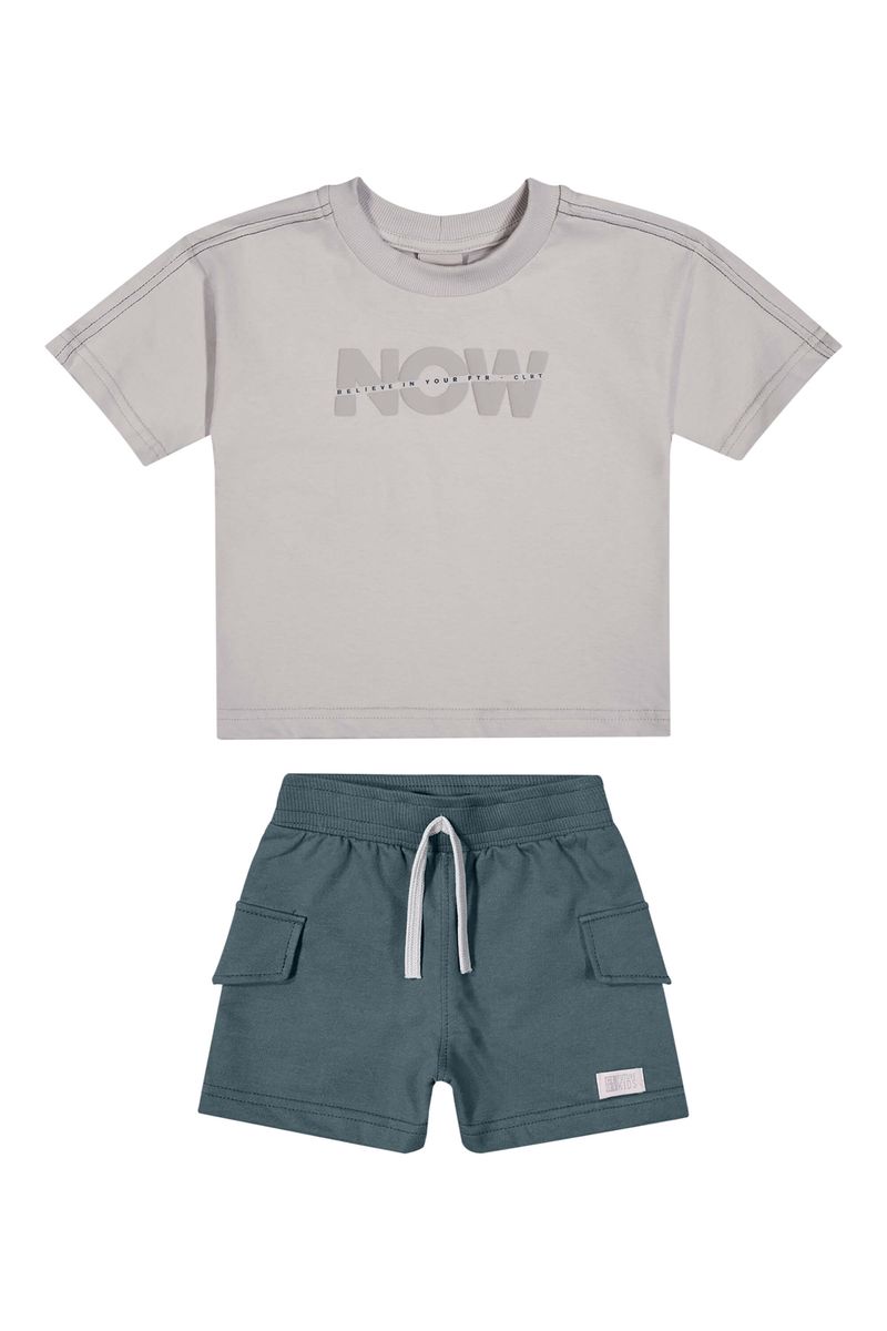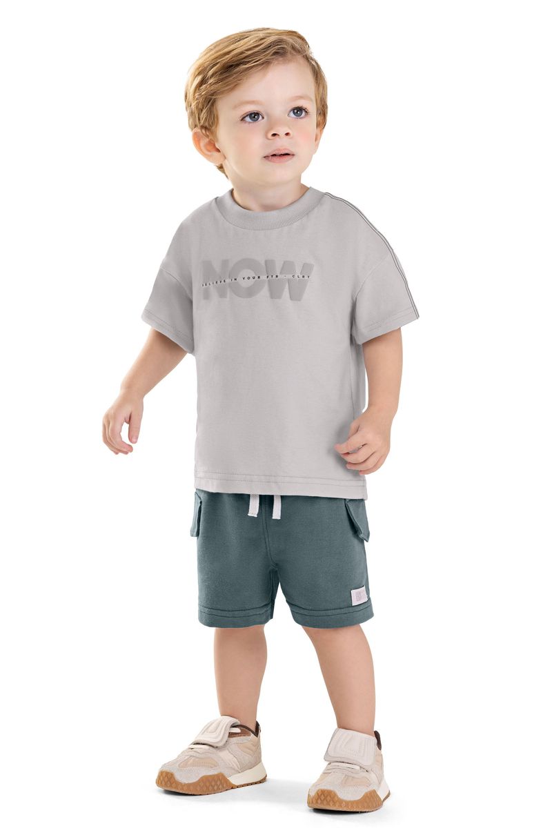• Conjunto composto por camiseta e bermuda • Feito em meia malha e moletinho • Possui mangas curtas com recorte nos ombros • Estampa com elevo • Elástico no cós • Possui detalhes em lapela • Ideal para passeios e momentos de lazer
