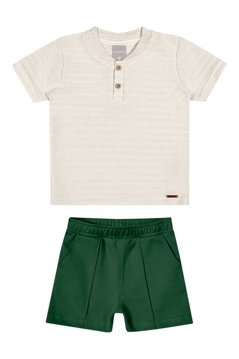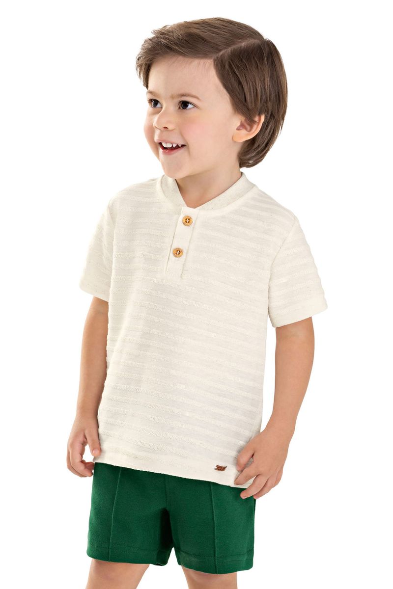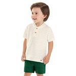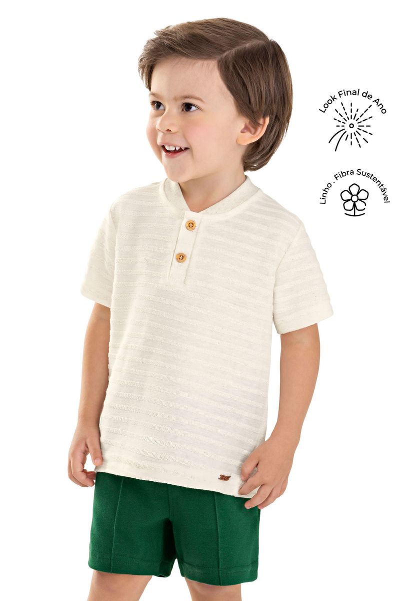 • Conjunto composto por camiseta e bermuda • Feito em malha linho listrada e moletom ponto roma • Possui mangas curtas • Abertura em botões no peitilho • Elástico no cós • Possui bolsos • Ideal para momentos especiais e passeios