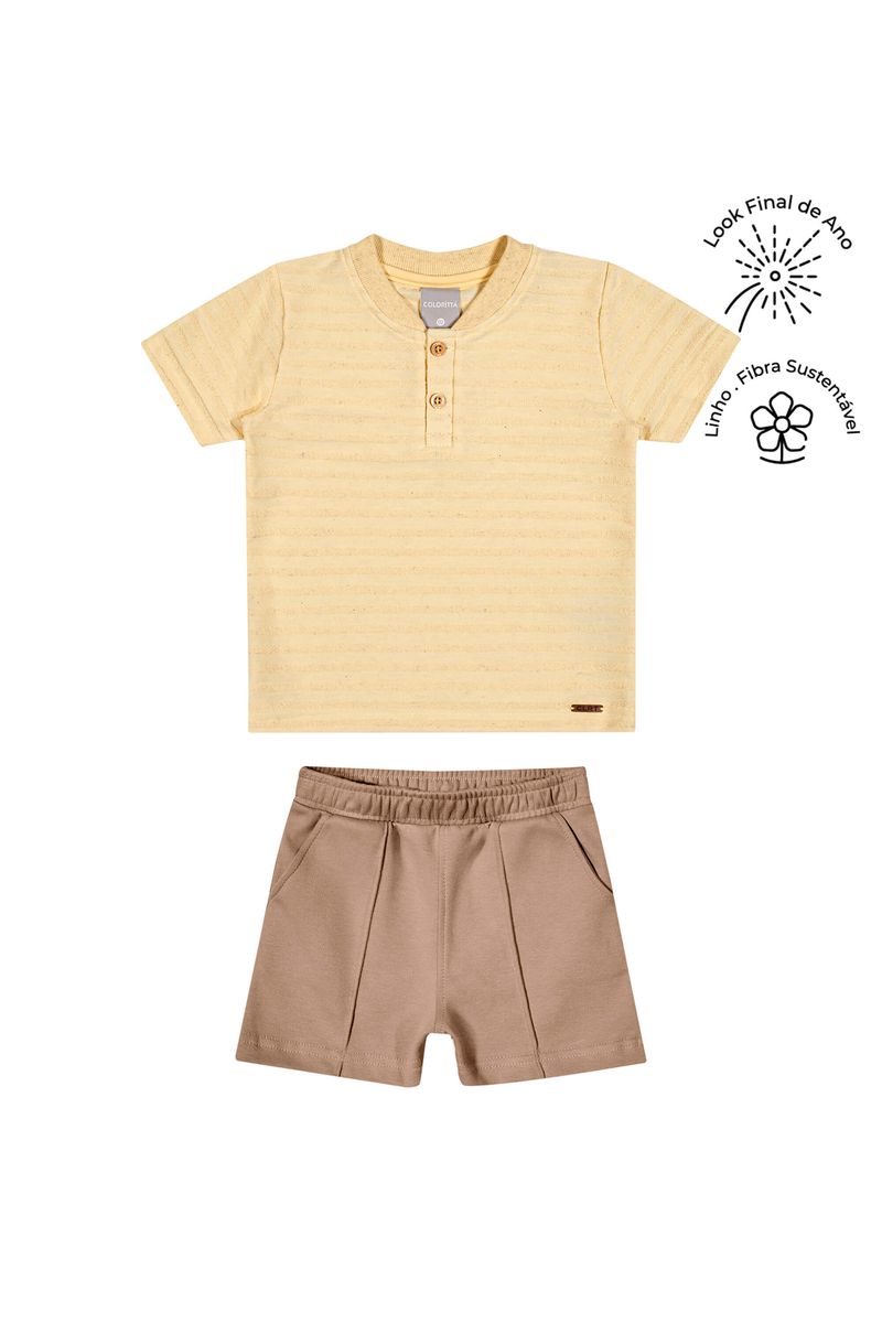 InfantilMeninosConjuntos MeninosConjunto Infantil Menino Linho Listrado Colorittá Amarelo