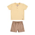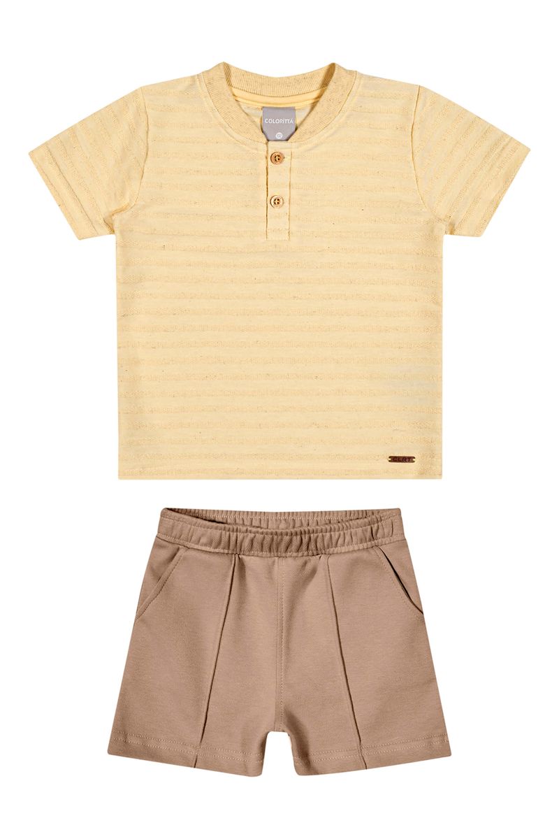 • Conjunto composto por camiseta e bermuda • Feito em malha linho listrada e moletom ponto roma • Possui mangas curtas • Abertura em botões no peitilho • Elástico no cós • Possui bolsos • Ideal para momentos especiais e passeios
