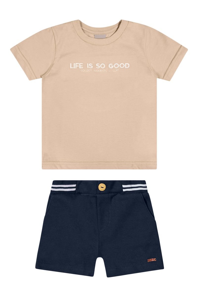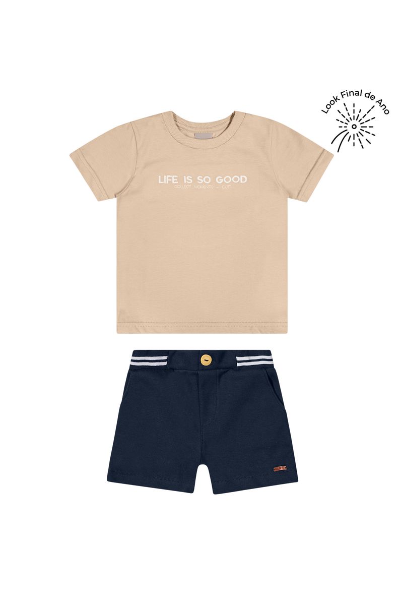 • Conjunto composto por camiseta e bermuda • Feito em meia malha e moletom ponto roma • Possui mangas curtas • Possui bordado • Elástico no cós com retilínea • Possui bolsos • Ideal para momentos especiais