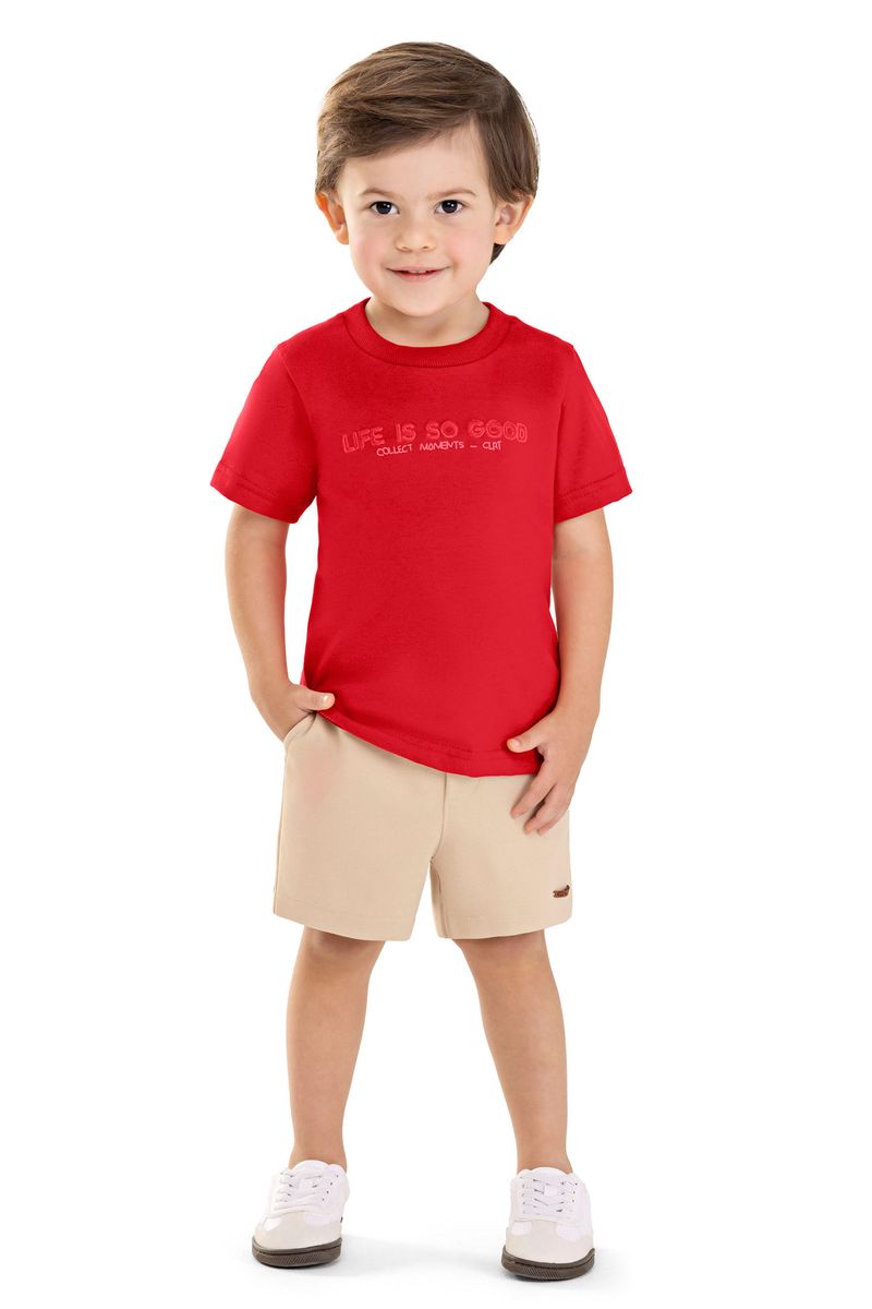 • Conjunto composto por camiseta e bermuda • Feito em meia malha e moletom ponto roma • Possui mangas curtas • Possui bordado • Elástico no cós com retilínea • Possui bolsos • Ideal para momentos especiais