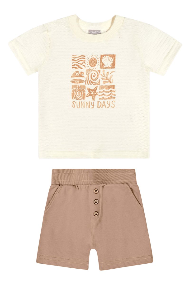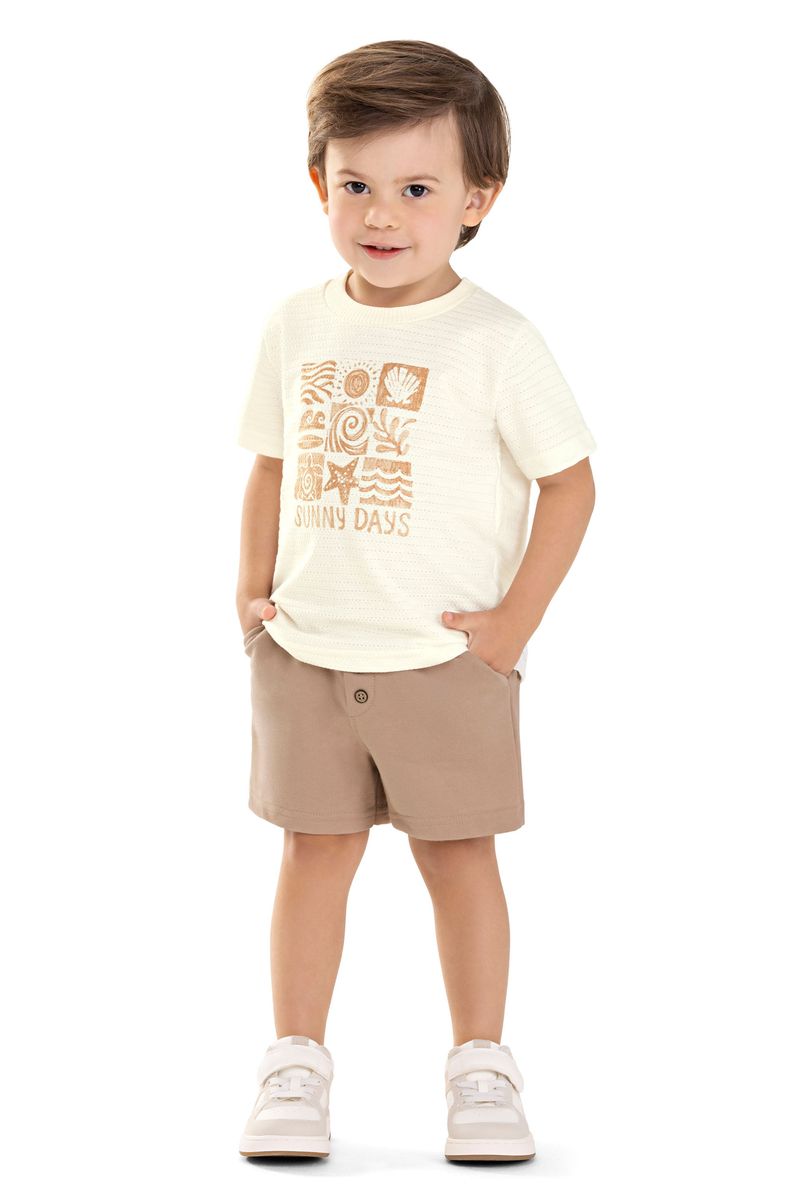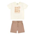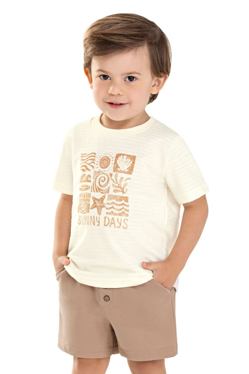 • Conjunto composto por camiseta e bermuda • Feito em malha texturizada e moletinho • Estampa com temática tropical • Elástico no cós • Possui bolsos • Ideal para passeios divertidos e momentos descontraídos