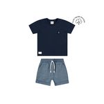 • Conjunto composto por camiseta e bermuda • Feito em meia malha e tecido eco jeans • Recorte superior com botão • Elástico no cós • Possui bolsos • Ideal para encontros em família, passeios e momentos especiais