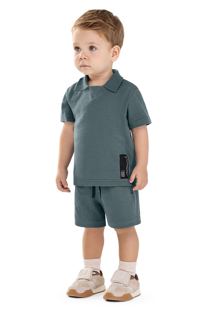 • Conjunto composto por camisa polo e bermuda • Feito em dupla face piquet • Possui mangas curtas • Possui gola estruturada com detalhe em V • Elástico no cós • Possui bolsos • Ideal para ocasiões que pedem um visual mais alinhado