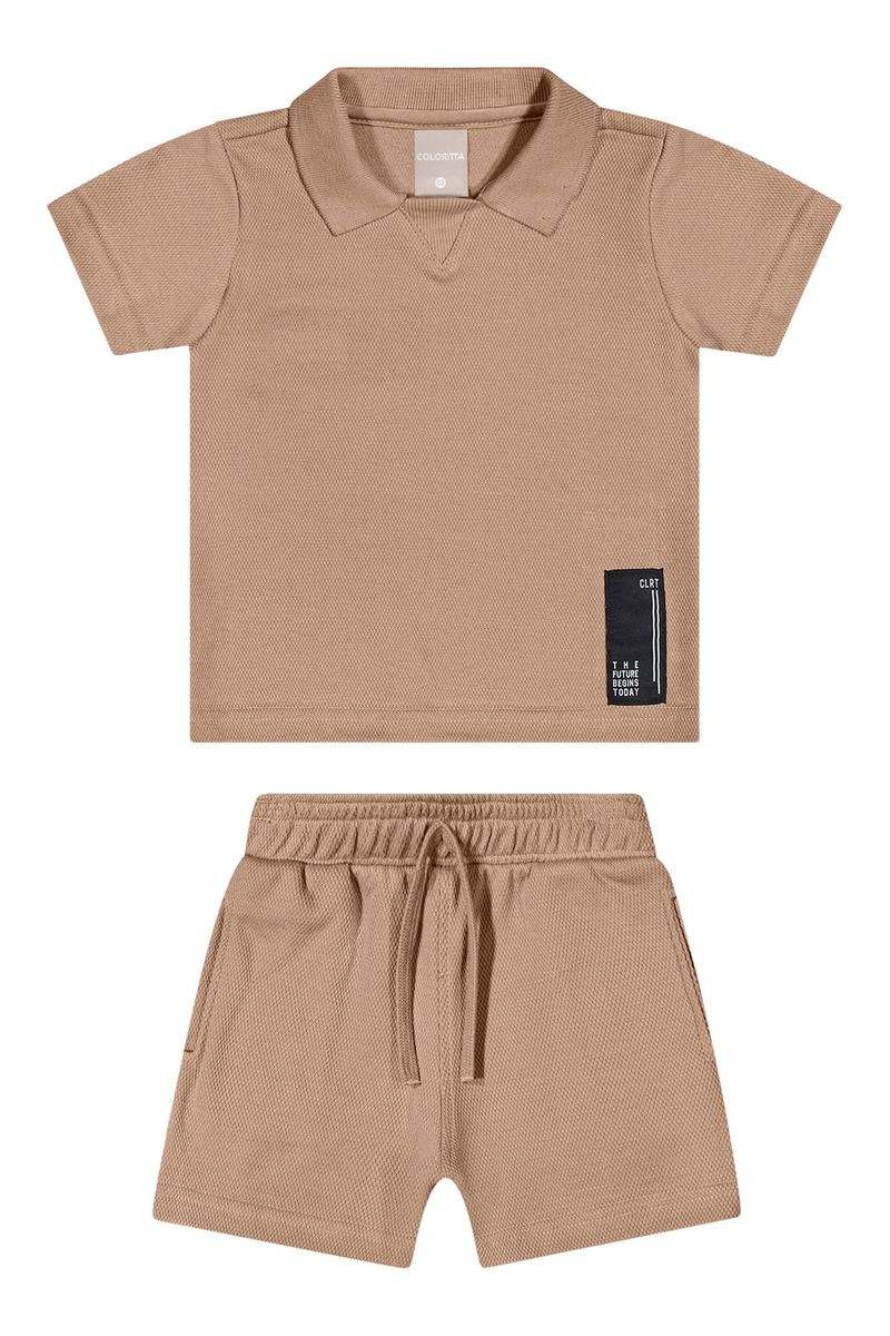 • Conjunto composto por camisa polo e bermuda • Feito em dupla face piquet • Possui mangas curtas • Possui gola estruturada com detalhe em V • Elástico no cós • Possui bolsos • Ideal para ocasiões que pedem um visual mais alinhado