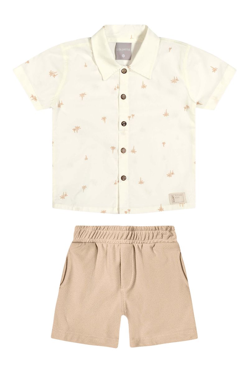 • Conjunto composto por camisa e bermuda • Feito em tecido tricoline com elastano estampado • Possui mangas curtas • Abertura frontal em botões • Estampa tropical de palmeiras • Elástico no cós • Possui bolsos • Ideal para passeios ou eventos especiais