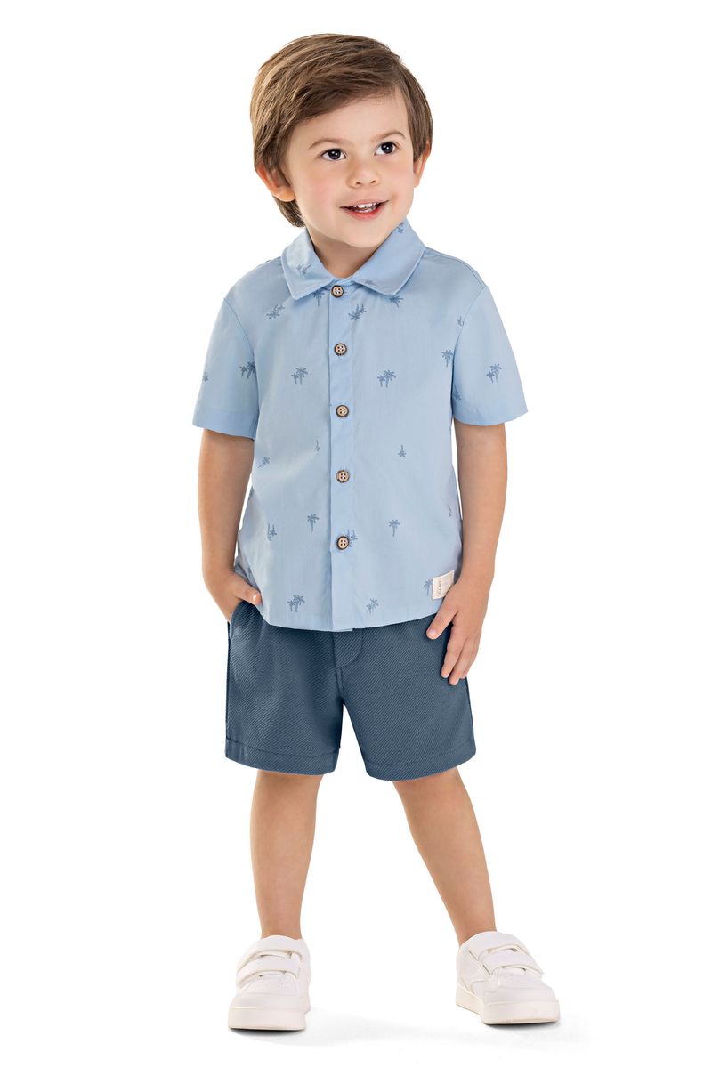 • Conjunto composto por camisa e bermuda • Feito em tecido tricoline com elastano estampado • Possui mangas curtas • Abertura frontal em botões • Estampa tropical de palmeiras • Elástico no cós • Possui bolsos • Ideal para passeios ou eventos especiais