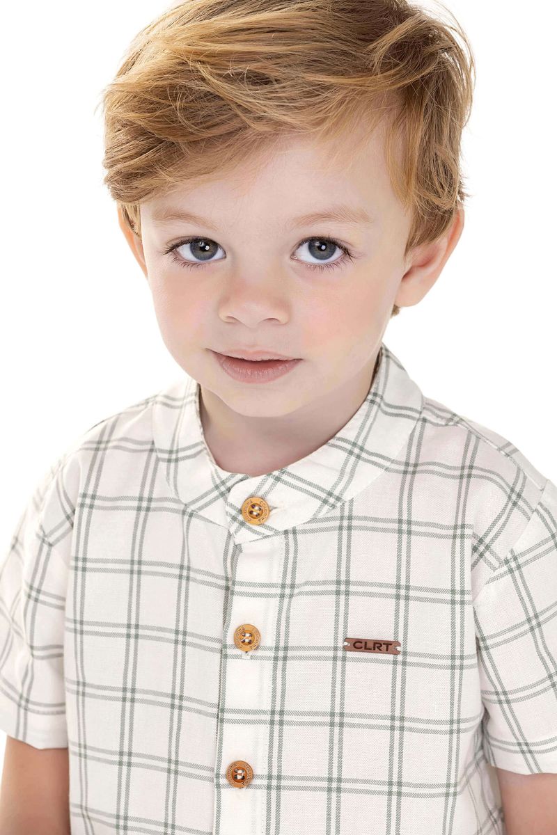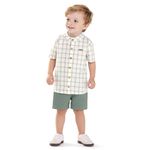 • Conjunto composto por camisa e bermuda • Feito em tecido xadrez fio tinto e sarja com elastano • Possui mangas curtas • Abertura frontal em botões • Elástico no cós • Possui bolsos • Ideal para festas e momentos especiais