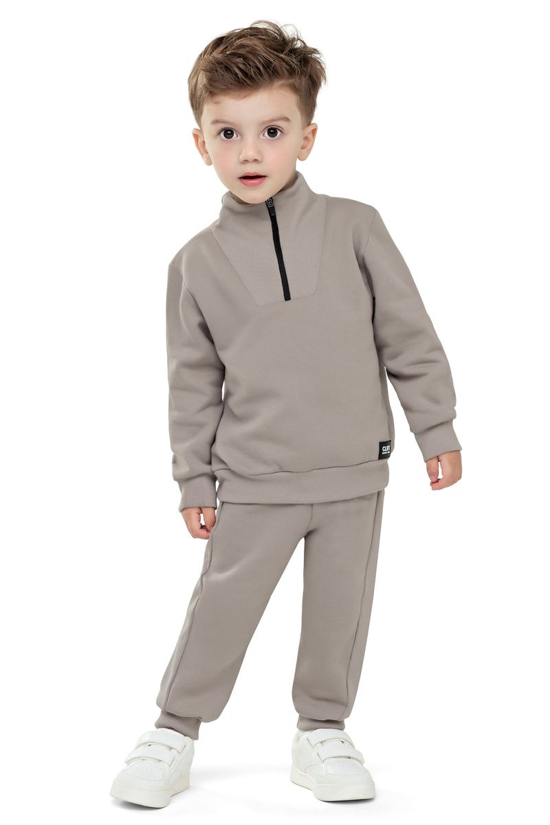 • Conjunto composto por blusão e calça • Feito em moletom felpado • Possui mangas longas • Possui gola alta com zíper • Elástico no cós • Detalhe em recorte nas laterais • Ideal para passeios ou momentos especiais