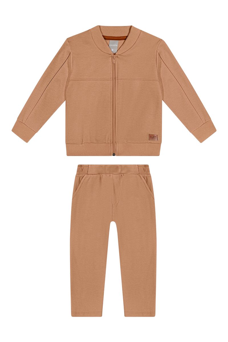 • Conjunto composto por jaqueta e calça • Feito em moletom ponto roma • Possui mangas longas • Abertura em zíper • Elástico no cós • Possui bolsos • Ideal para dia a dia ou passeios