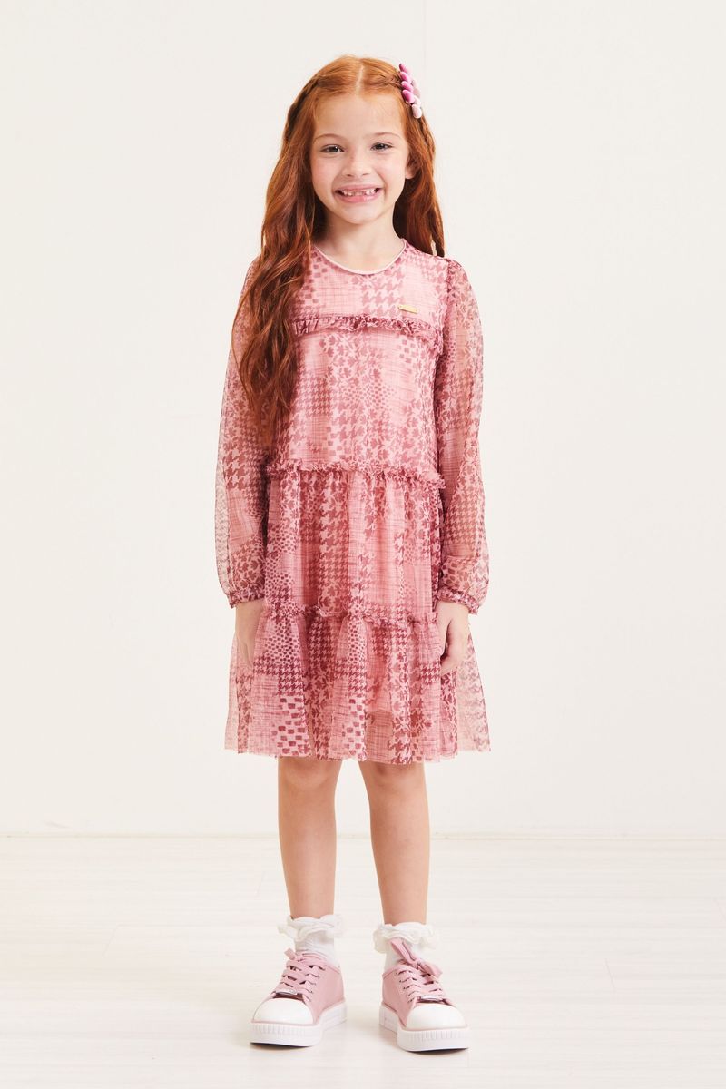 Vestido Infantil Menina Moderno com Tule Colorittá Rosa Claro REF: 73144-4004
