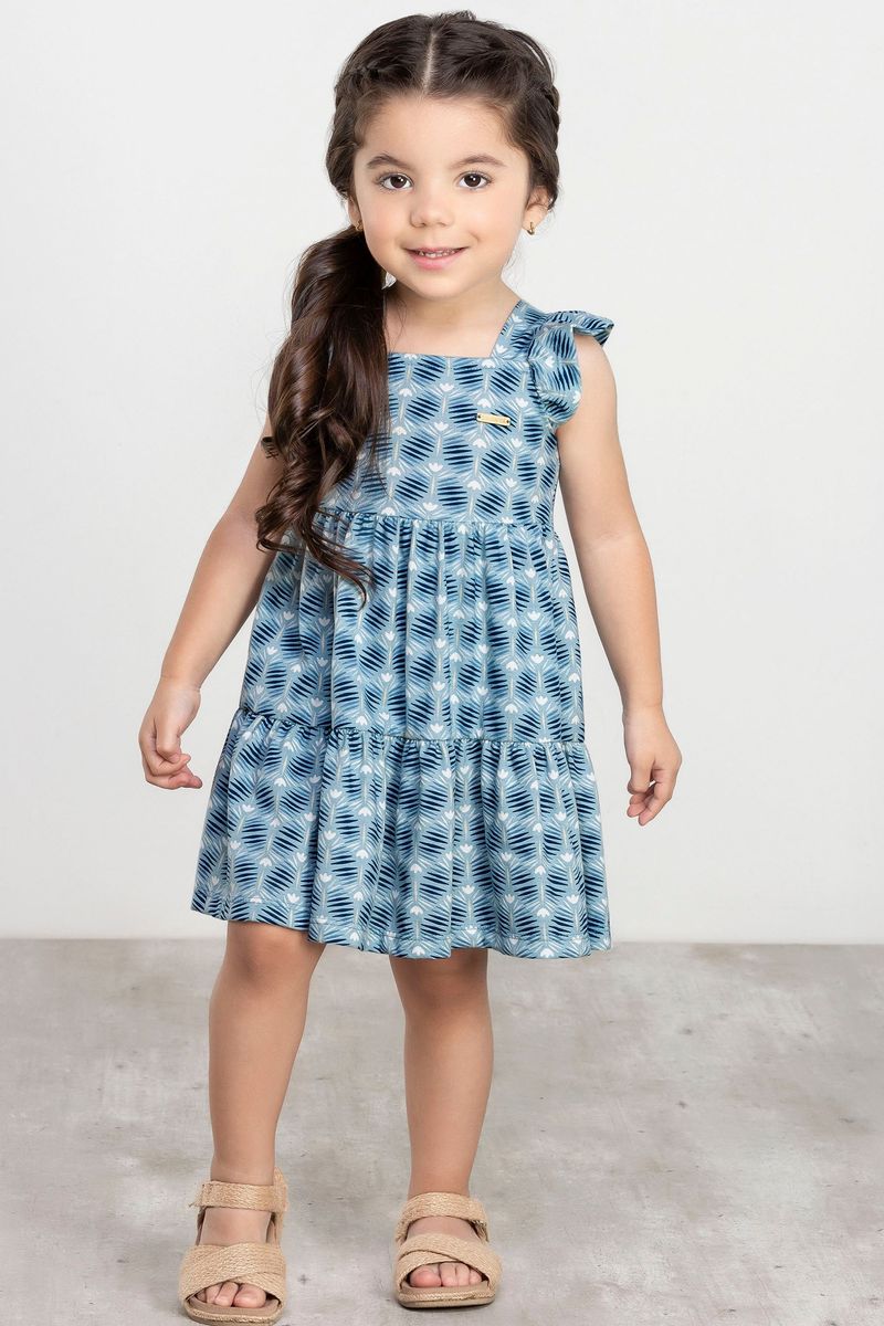 Vestido Infantil Menina em Algodão Colorittá Azul REF: 73173-6798