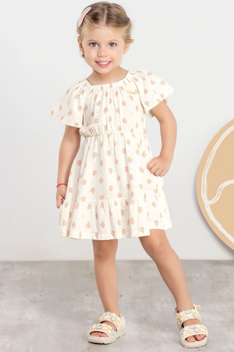 Vestido Infantil Menina Franzido Colorittá Bege REF: 73176-2037