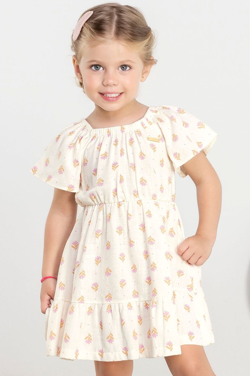 InfantilMeninasVestidos MeninasVestido Infantil Menina Franzido Colorittá Bege