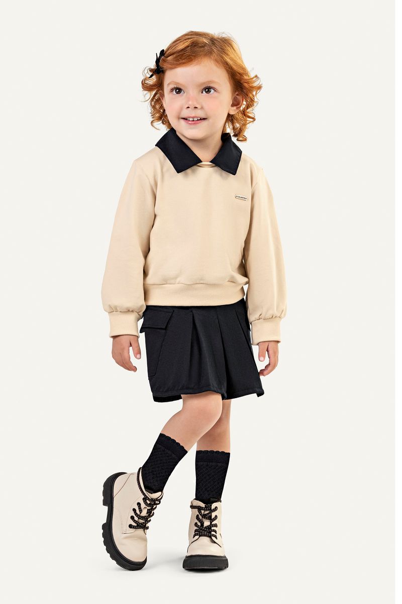 Conjunto Longo Infantil Menina Manga Bufante Colorittá Bege REF: 73243-2057