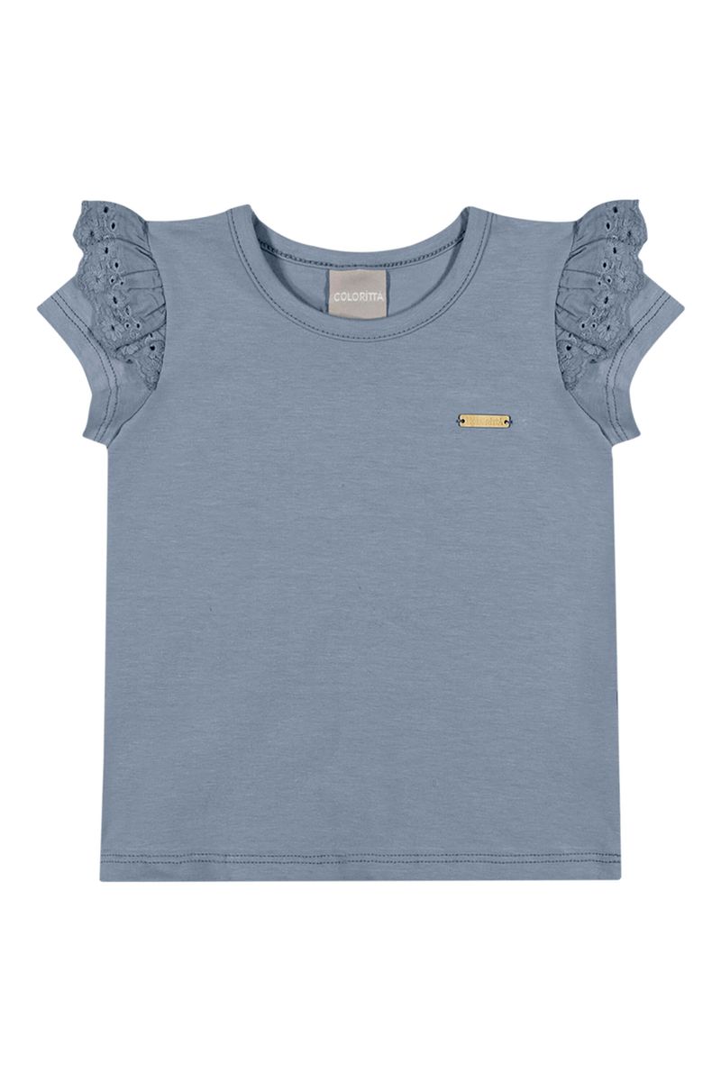 Blusa Infantil Menina Babado Com Renda Colorittá Azul REF: 73269-6131