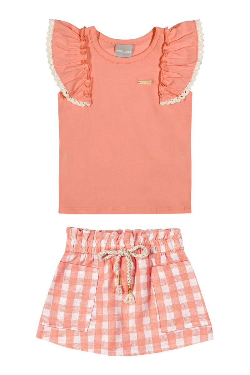 Conjunto Curto Infantil Menina Xadrez Colorittá Laranja REF: 73273-3470