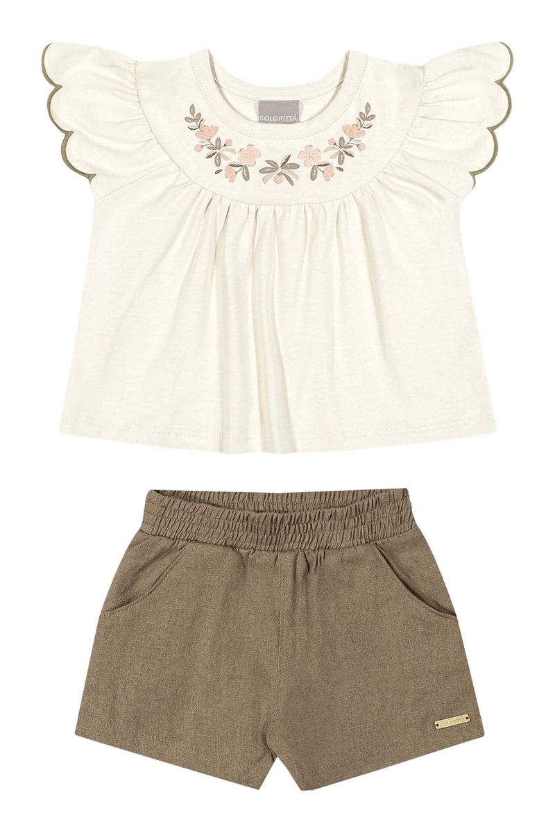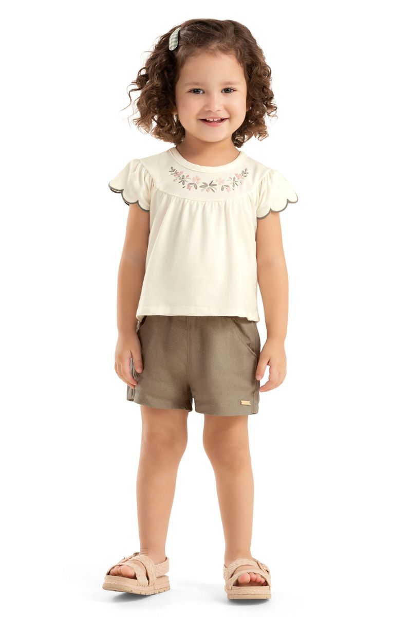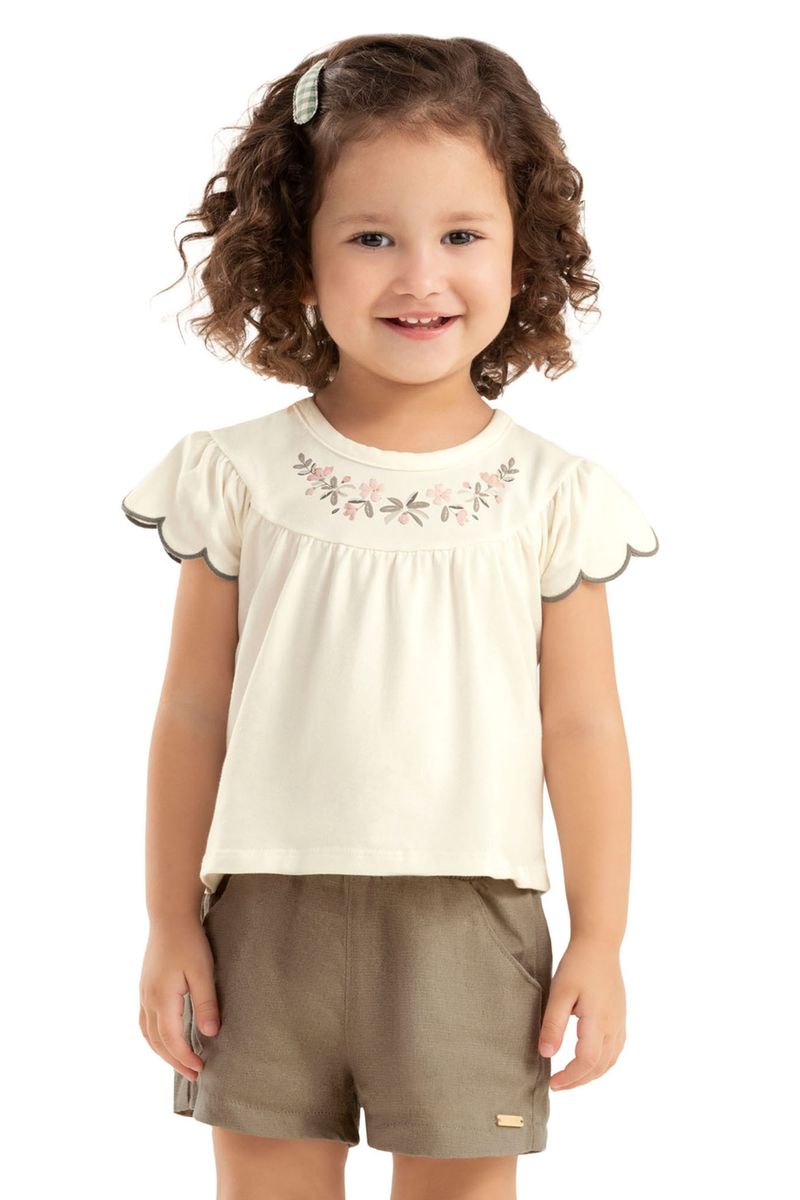 InfantilMeninasConjuntos MeninasConjunto Infantil Menina Bordado Flores Colorittá Branco