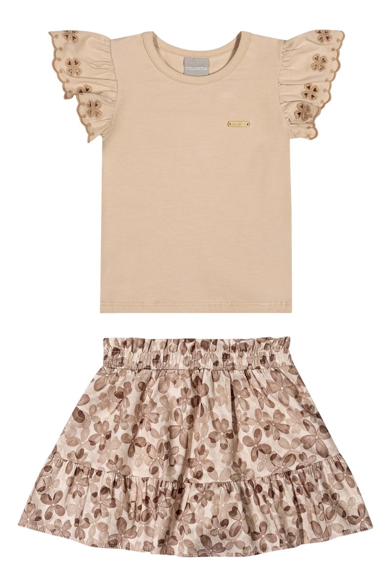 Conjunto Infantil Menina Floral Bordado Colorittá Marrom REF: 73275-2039